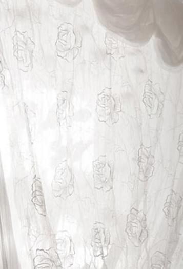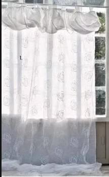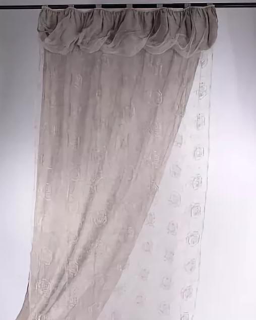 Одно полотно шторы льняное, второе полотно шторы органза расшитая розами.