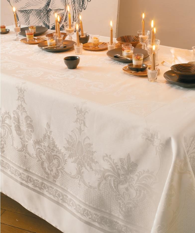 Премиальная Скатерть Garnier-Thiebaut BEAUREGARD IVORY диаметр 195 артикул 79883 купить с доставкой в Москве, цены - интернет-магазин по продаже скатертей №1 в России