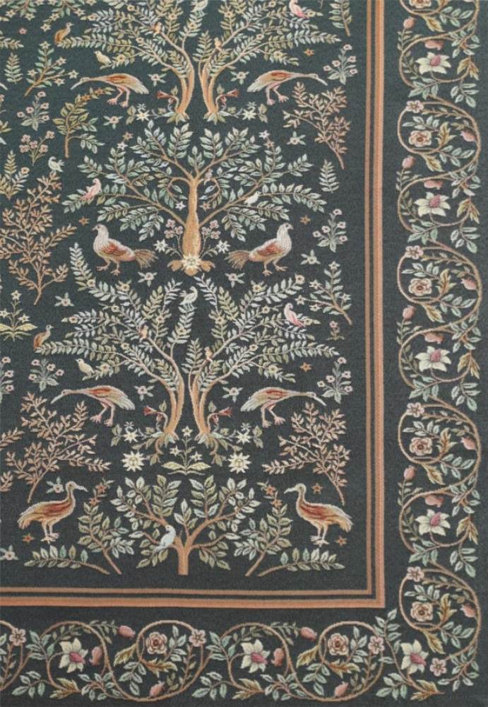 Рисунок создается переплетением нитей различных цветов и фактуры. Состав ткани: хлопок (дающий фактуру и приятную тактильность) и синтетические нити (придающие износостойкость). Плотность гобелена 410 г/метр2.