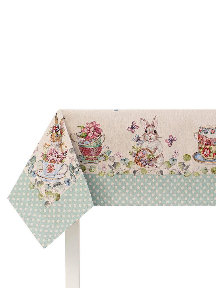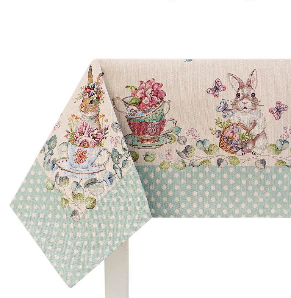 Премиальная Скатерть Le Gobelin ЗАЙКИ СЛАДКОЕЖКИ 140х140 артикул 81722 купить с доставкой в Москве, цены - интернет-магазин по продаже скатертей №1 в России