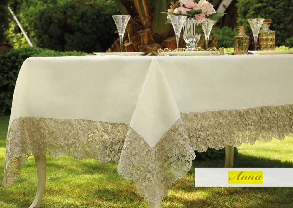 Роскошная скатерть турецкого производителя Daimon Home ANNA выполнена из 100% полиэстера с особым переплетением нитей. Благодаря такой технологии ткань напоминает структуру хлопкового полотна. Цвет скатерти крем, кружево золотистое. Все изделия Daimon Home украшены изящным французским кружевом ручной работы и упакованы в фирменную подарочную коробку.