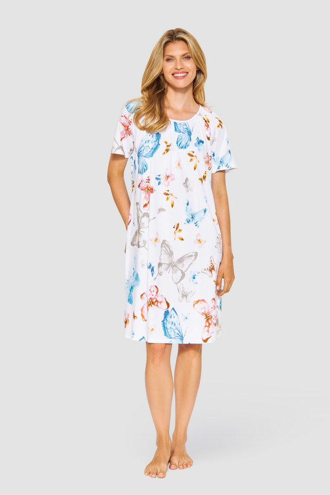 Ночная сорочка с рукавом 1/2 и с U-образным вырезом из мягчайшего хлопка. Рисунок бабочки. Длина 95 см. 100% хлопок.