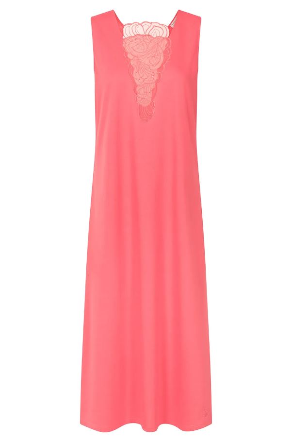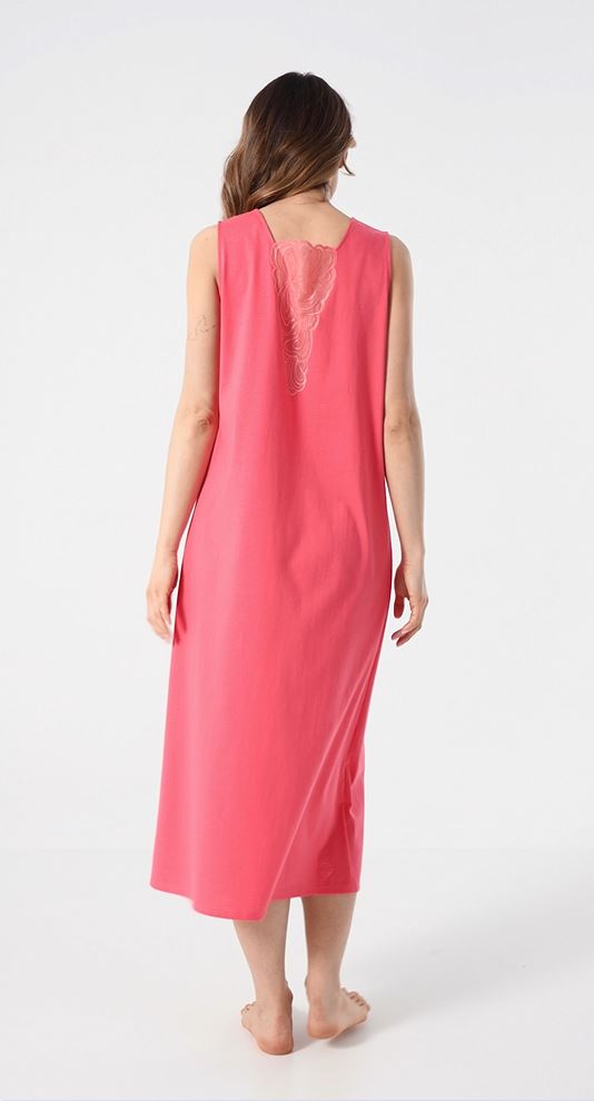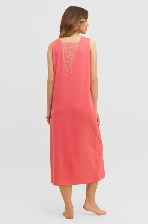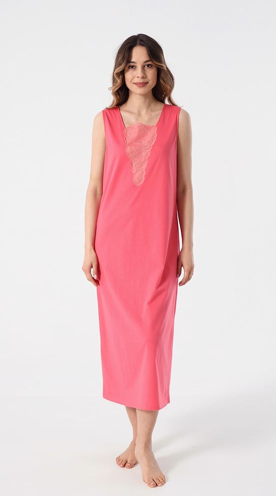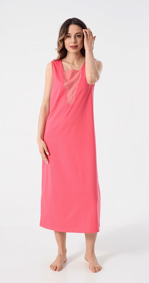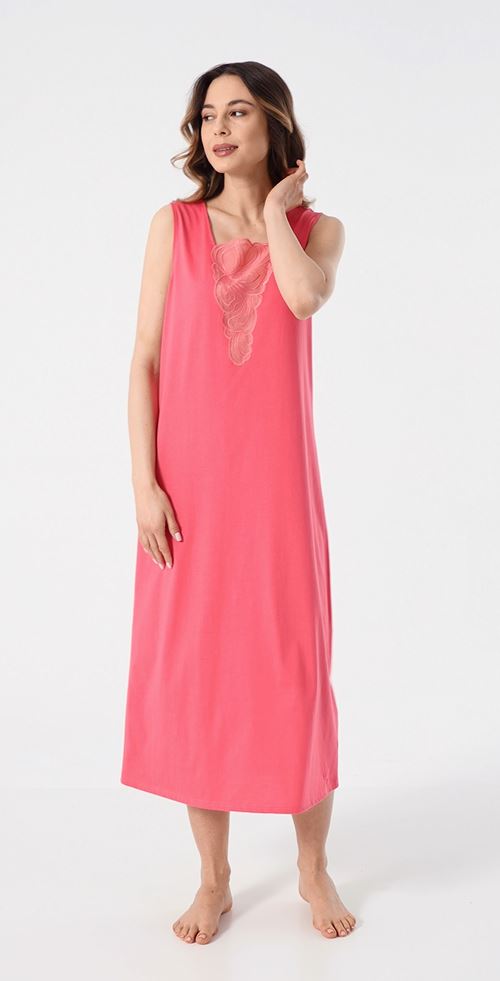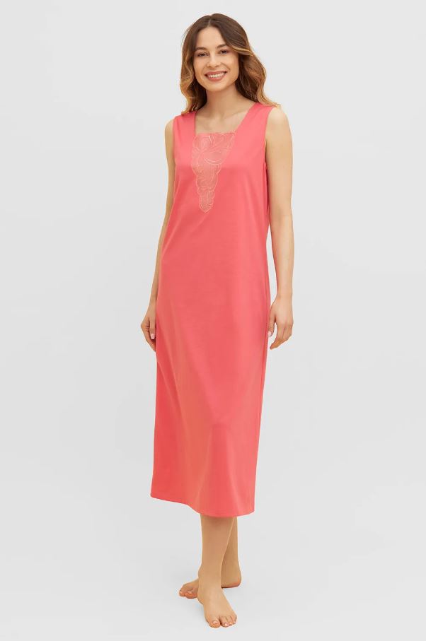 Ночная сорочка без рукавов с квадратным вырезом из мягчайшего шелковистого трикотажа кораллового цвета.