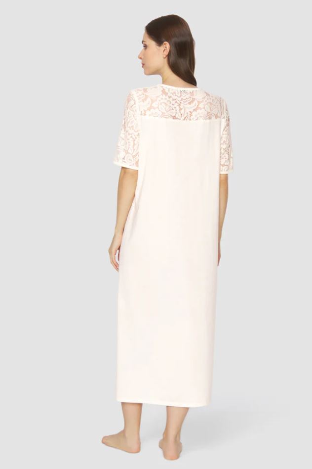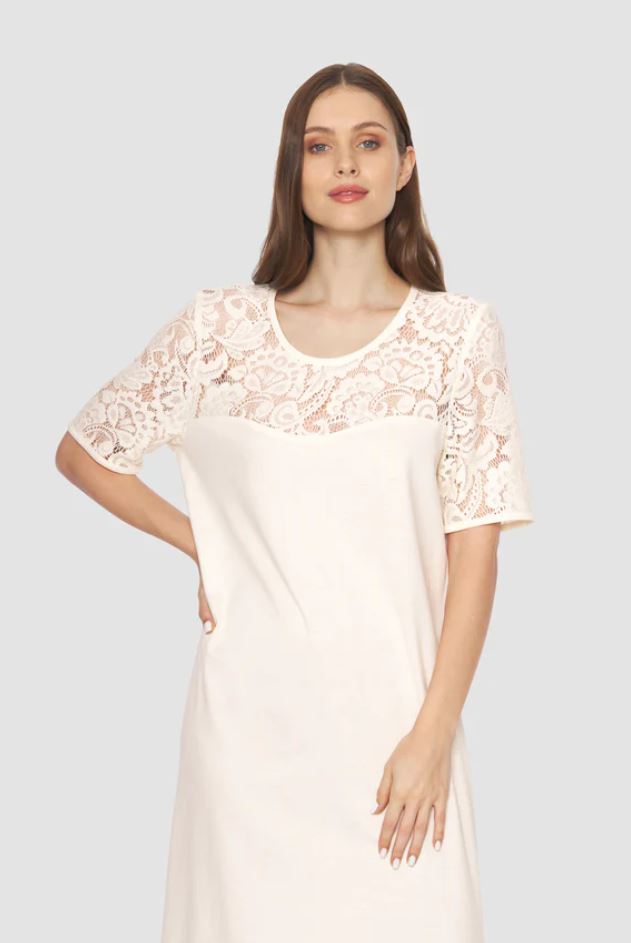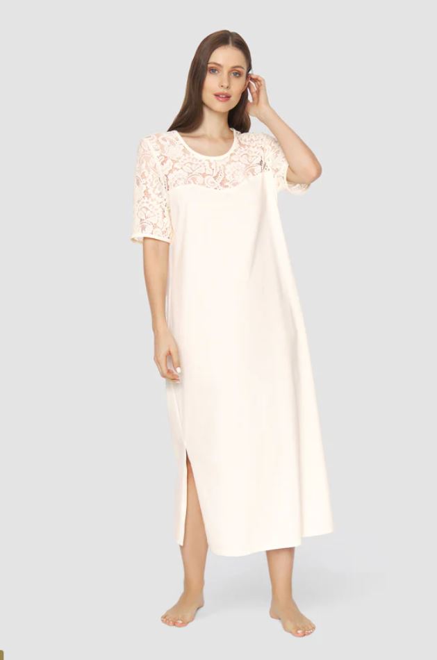 Однотонная ночная сорочка, рукав 1/2, круглый вырез.