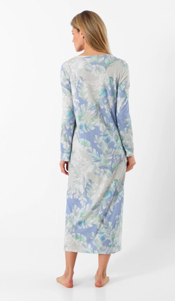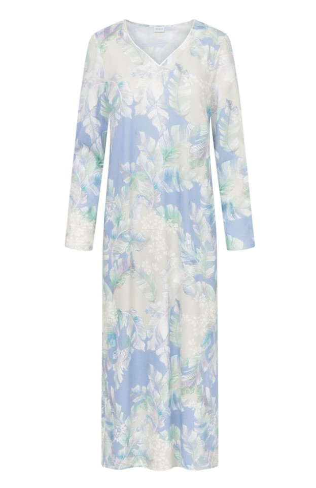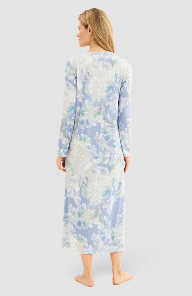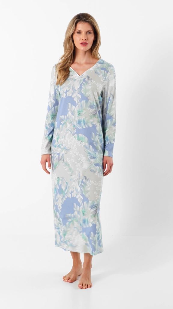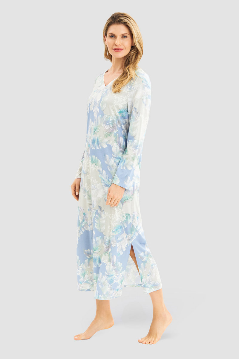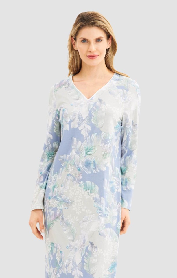 Ночное платье в сочетании с голубым принтом по всей поверхности.
