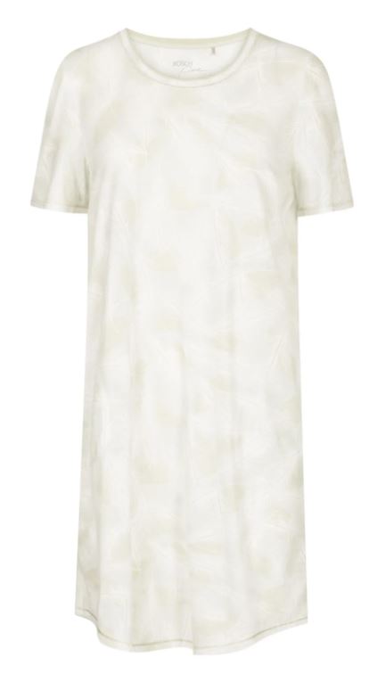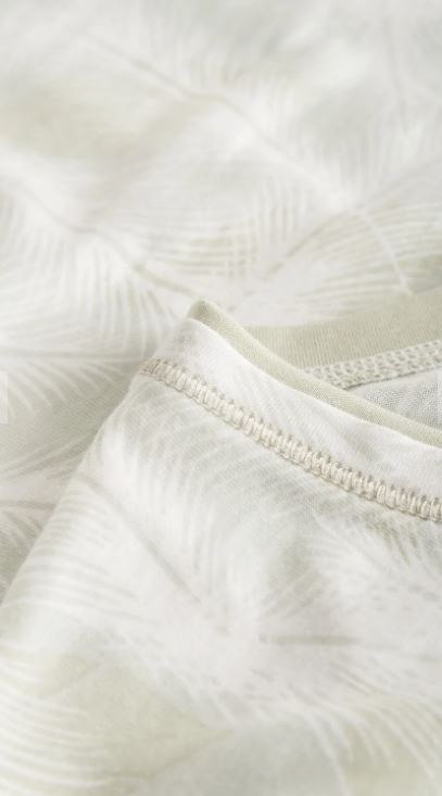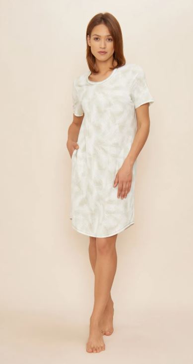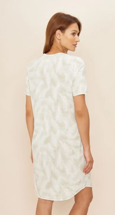 Ночная сорочка с короткими рукавами из хлопка/модала с принтом в виде листьев пастельно-зеленого цвета. Короткий рукав. Длина 95 см.