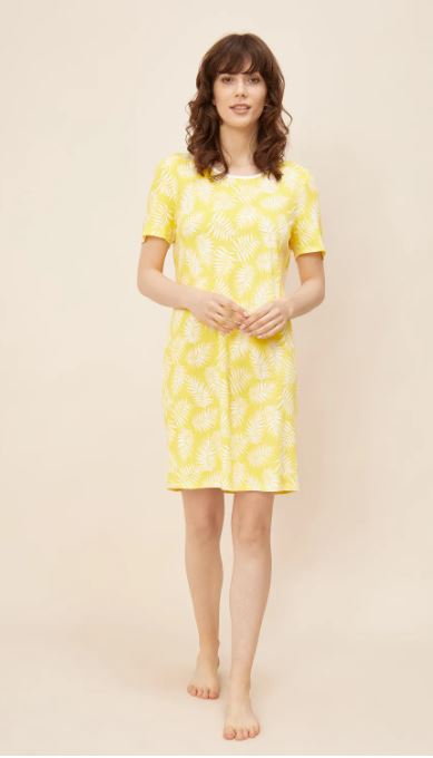 Желтая рубашка со свежим летним принтом из мягкой, удобной ткани интерлок.