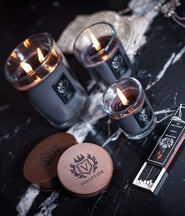 Свечи Vellutier изготовлены с использованием традиционных методов из бархатистого растительного воска высочайшего качества, сделанного по особому рецепту, и упакованы в уникальный стакан сложной формы с оригинальным вырезом, который образует идеальную фигуру с точно подобранной крышкой из натурального дерева. Геральдический логотип, выгравированный на деревянной крышке, подчеркивает уникальность благородного продукта. Ароматы Vellutier — это тщательно подобранные элегантные парфюмерные композиции, которые перенесут Вас в отдаленные места и расскажут об уникальных нотах, заложенных в них, и захватывающих историях из самых красивых уголков мира.