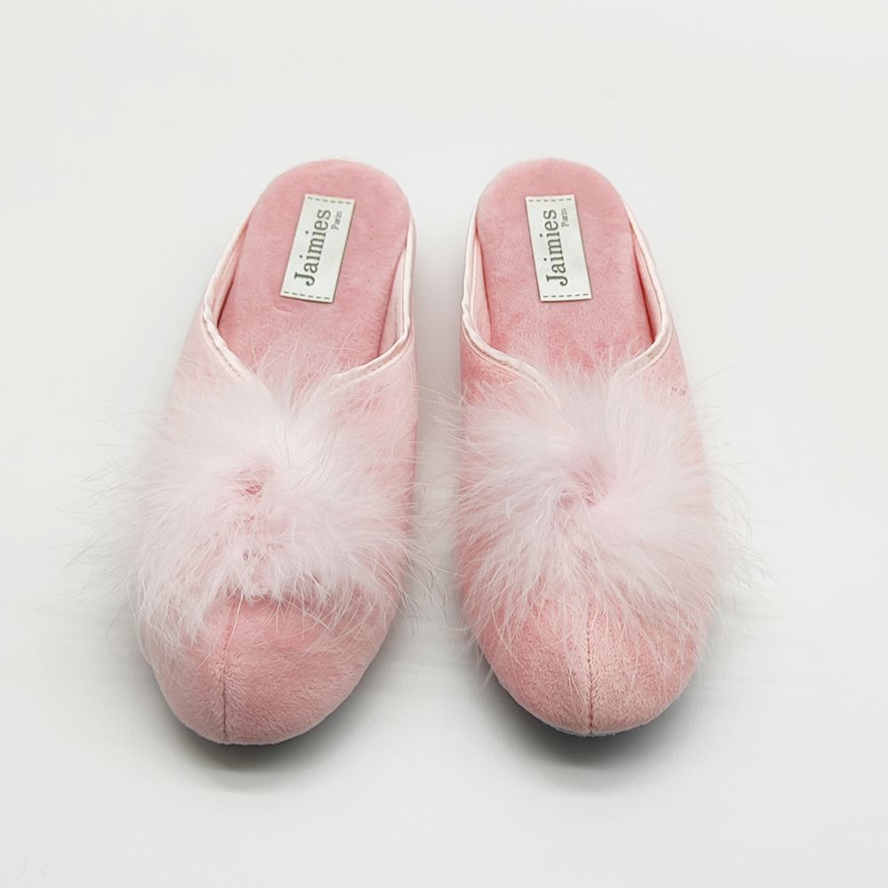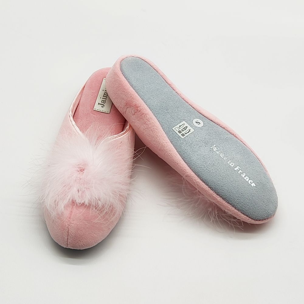 Настоящей леди хочется быть красивой всегда, даже в часы уютного домашнего отдыха. Дополнить элегантный образ утонченной красавицы вам помогут тапочки NATHALIE mule plume от французского бренда Jaimies. Изящная домашняя обувь классического розового цвета украшена кокетливой пуховкой, придающей паре особое очарование. Стелька выполнена из приятного велюра, поэтому вашим ножкам будет удобно и комфортно.