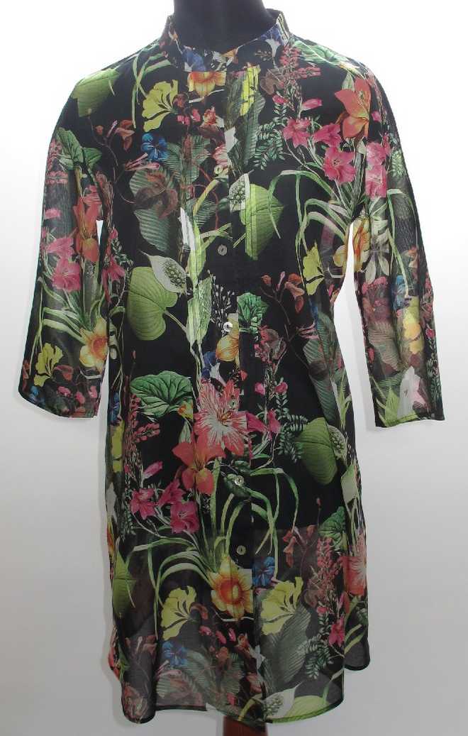 Туника-рубашка YBS-Furstenberg FLOWERS ON BLACK размер М