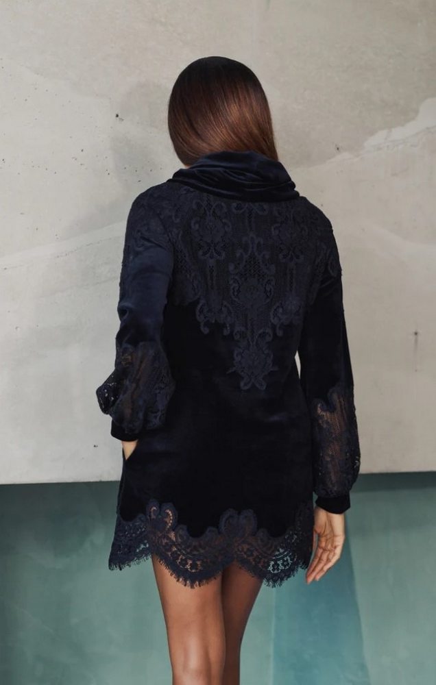 Бархатистое, обволакивающее и нежно-романтичное платье-туника Branda в коротком варианте сочетает в себе комфорт бархата с легкостью кружева.